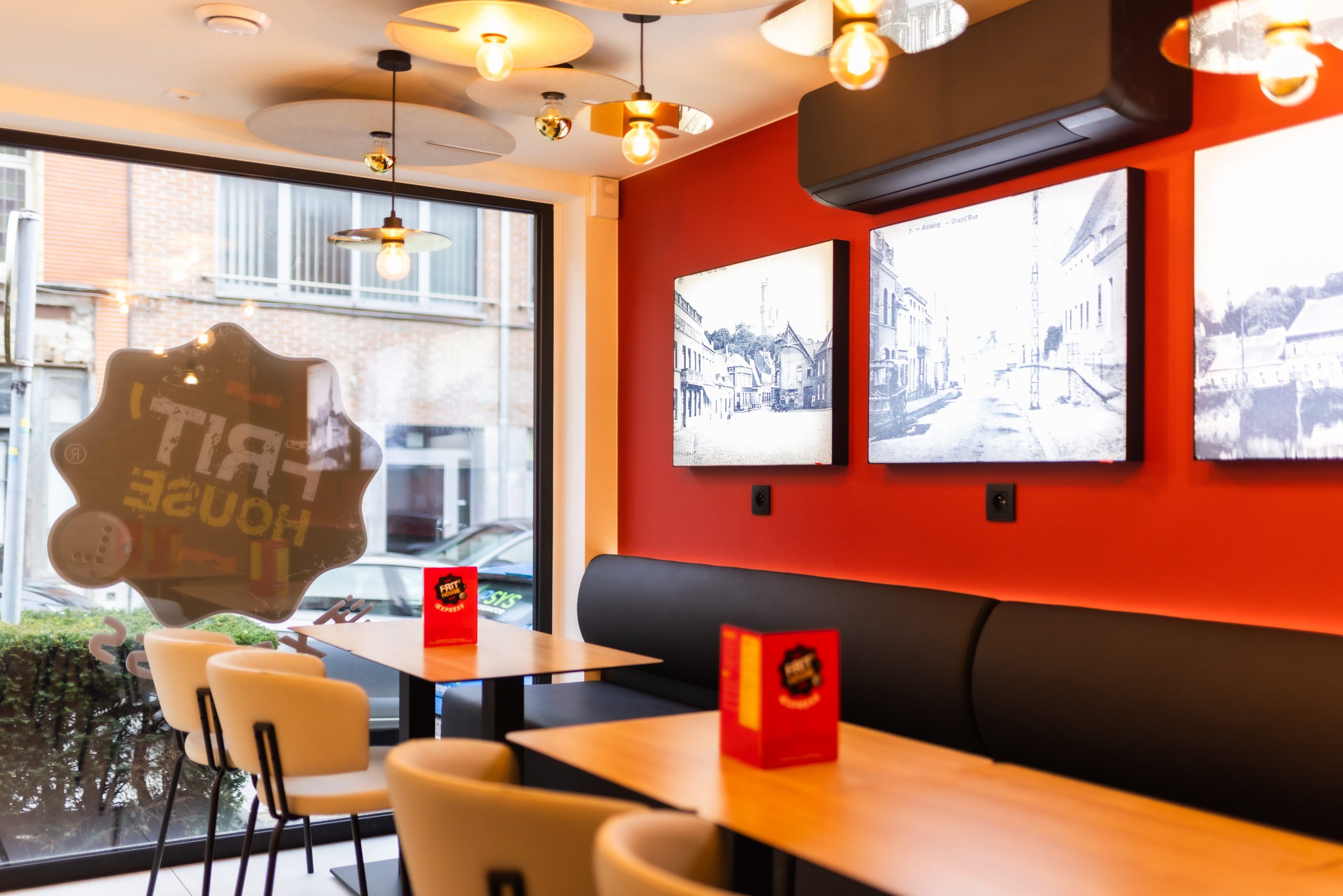 Nous avons ainsi imaginé un concept qui modernise les codes traditionnels de la friterie, en créant un lieu cozy, structuré et cohérent, tout en restant fidèle à l’esprit du commerce.