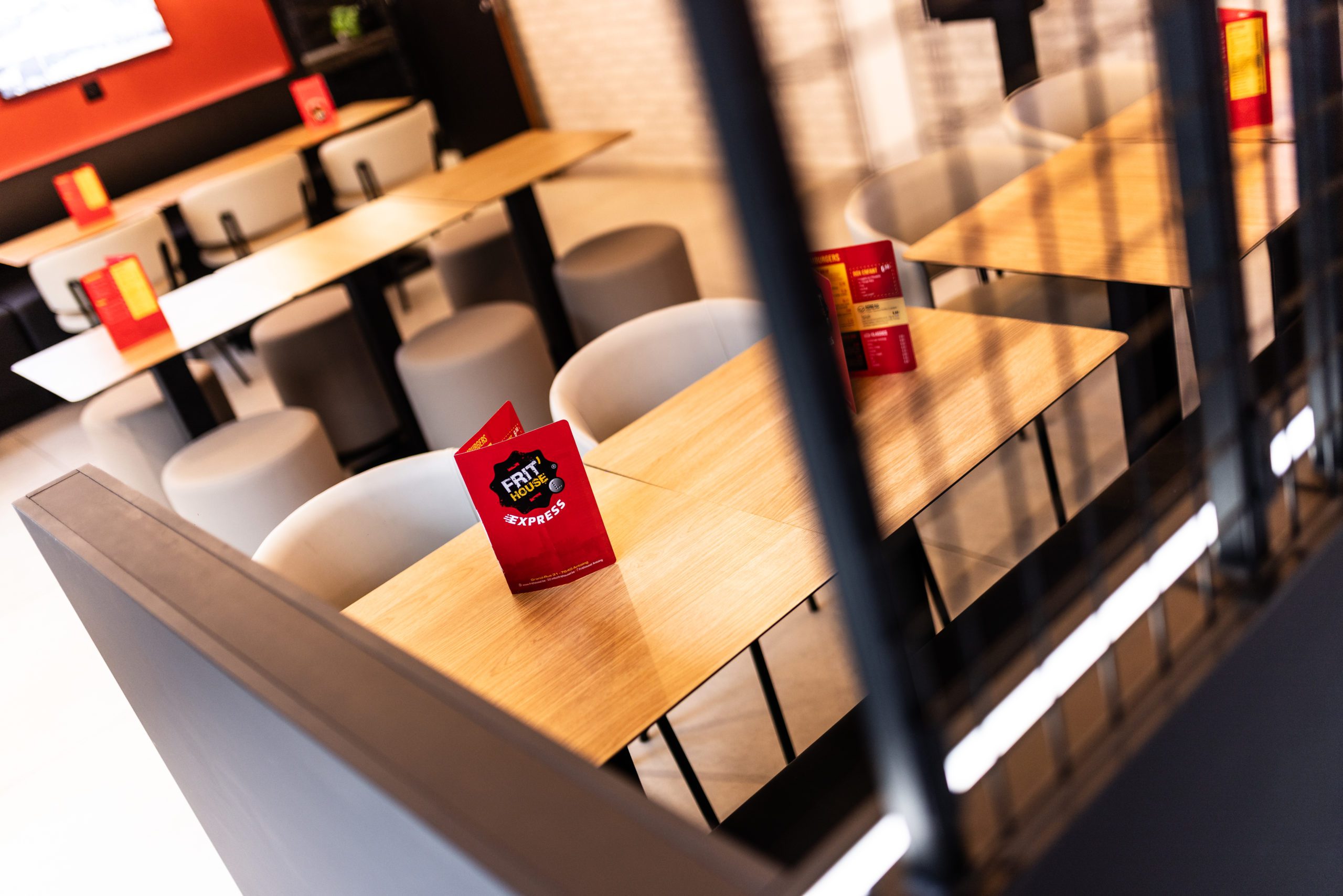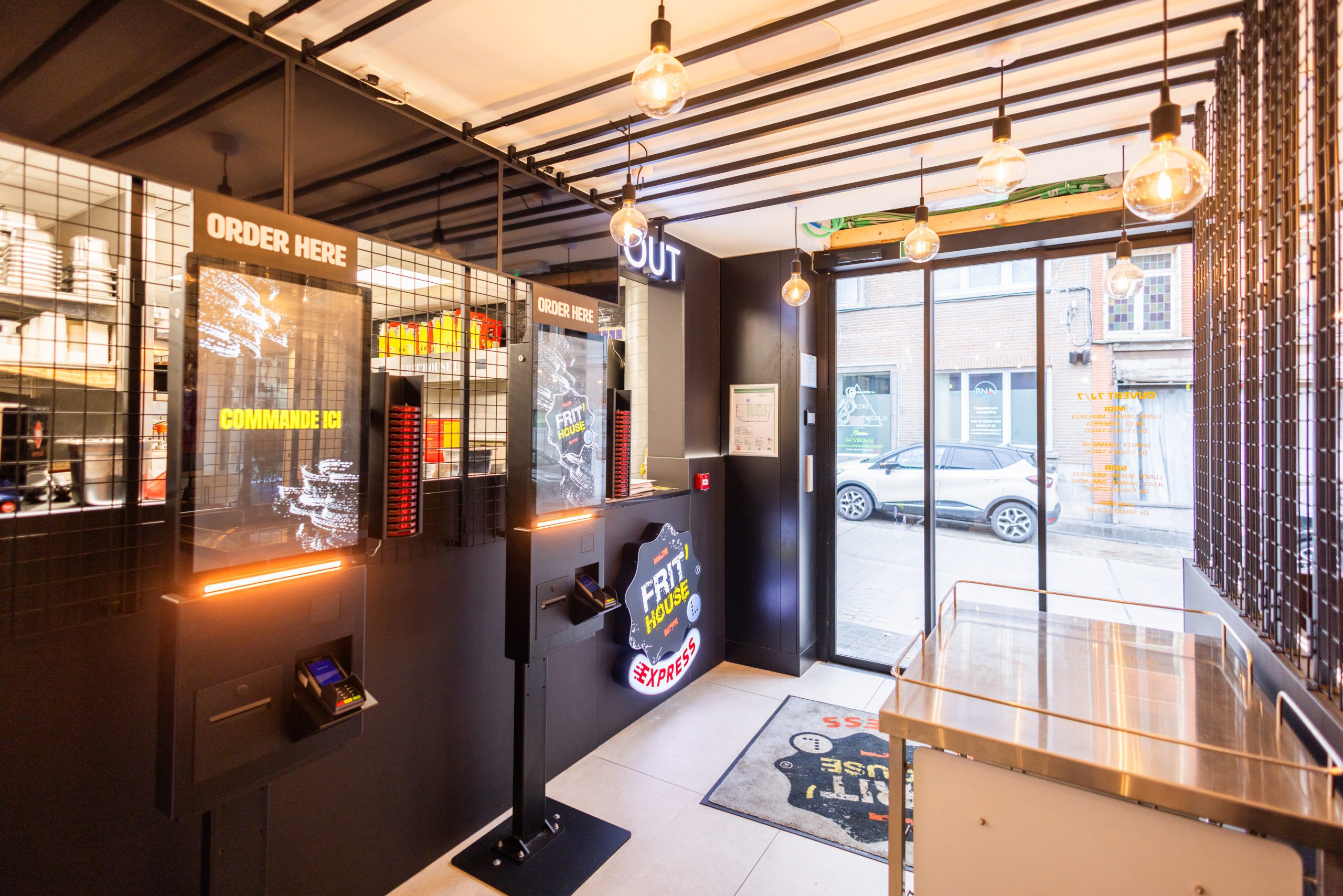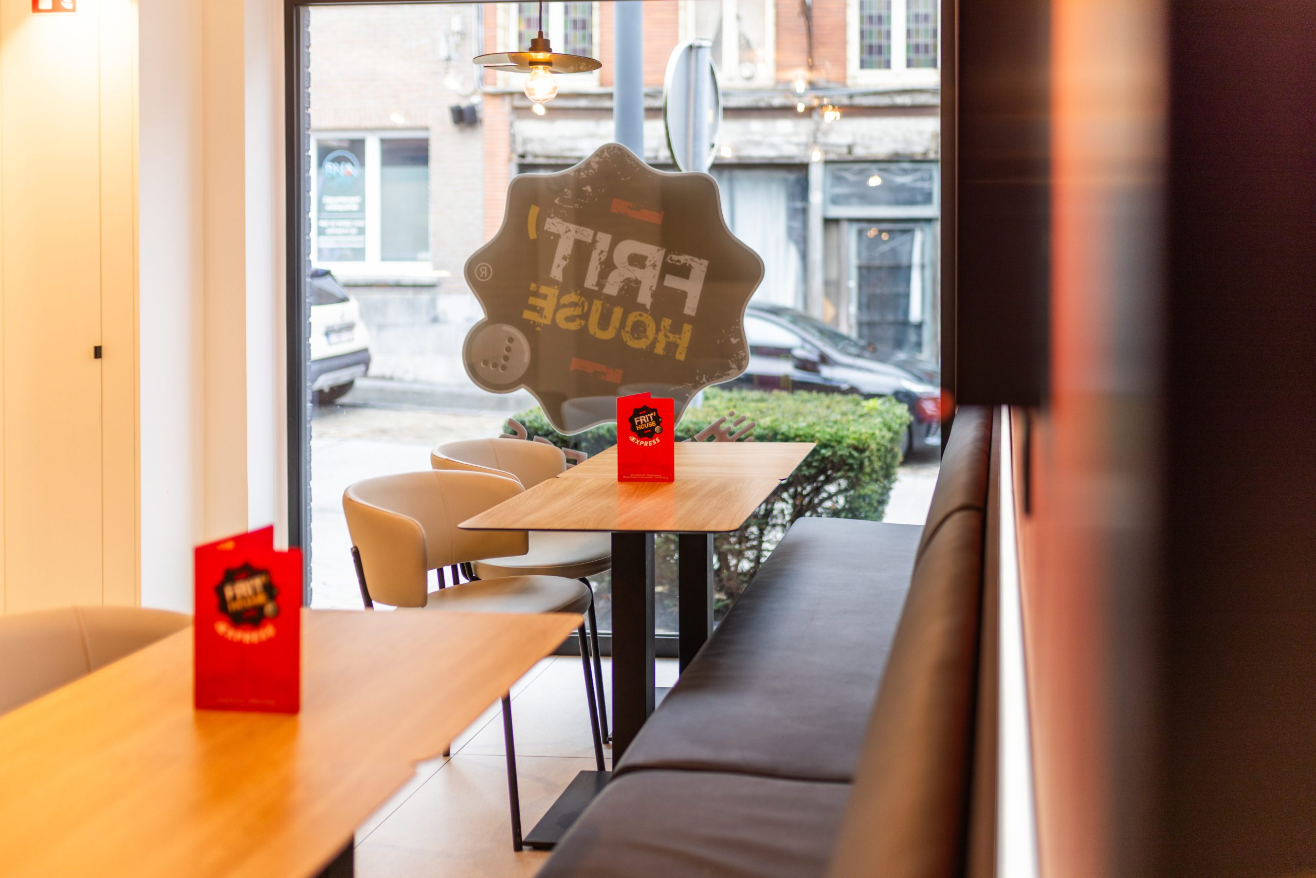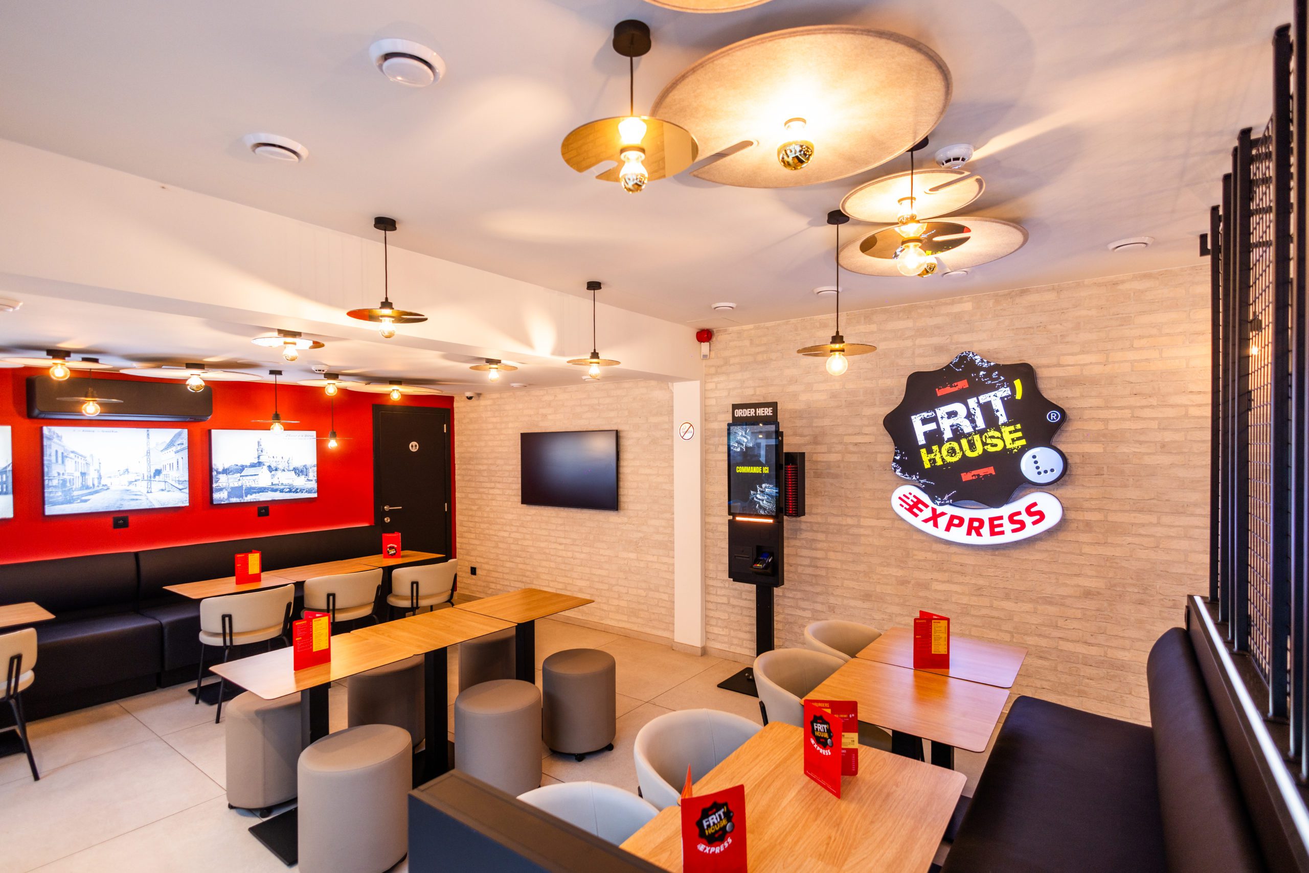 Pour ce projet, l’enjeu était de transformer une friterie existante en un lieu plus contemporain, chaleureux et accueillant, capable de répondre aux nouveaux usages : manger sur place, emporter rapidement, commander de manière autonome.